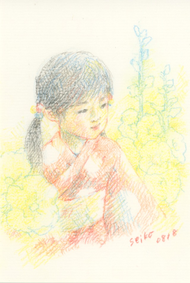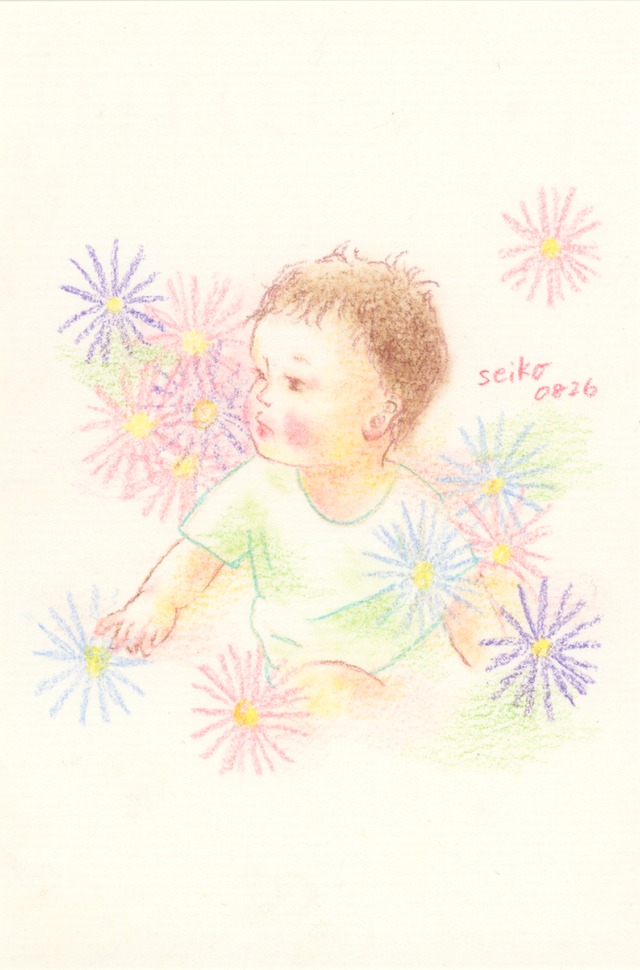 誕生花×こどものドローイング原画です。 ドローイングは、その時の感性に従い、短い時間で即興的に描いています。 また、こどものポージングが同じものを複数作成することによって、手頃な価格で販売させていただいております。 特別な日や好きな花のドローイングを見つけて、楽しんでみてください。 サイズ:はがきサイズ 裏面に郵便番号・切手欄印刷あり ※ドローイングのため、荒いタッチや下書きのような線、スレが残っているものもございます。それも含めてお楽しみいただける方にご購入願います。