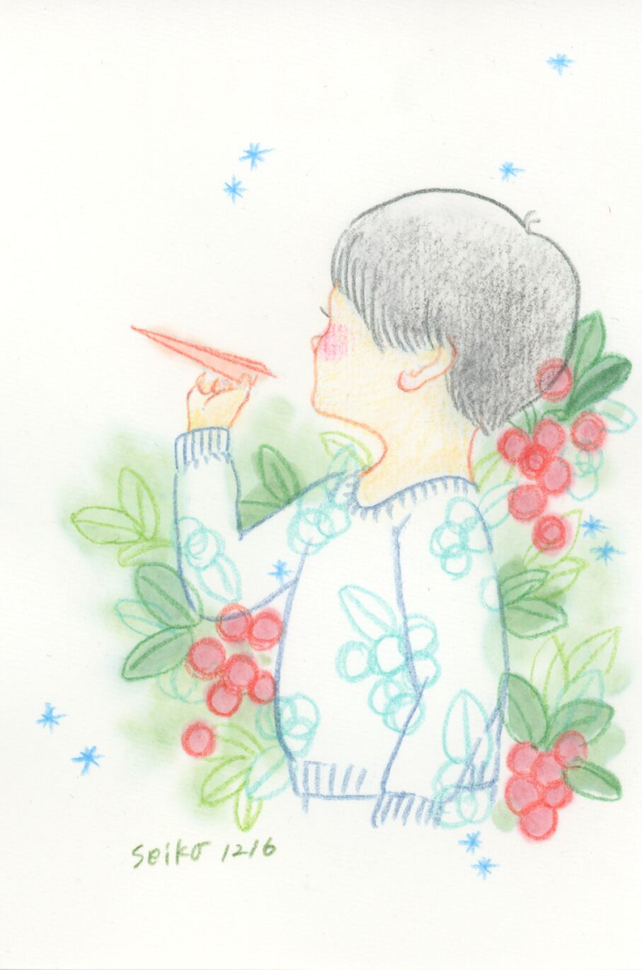 365ドローイング 12月16日 クリスマスホーリー