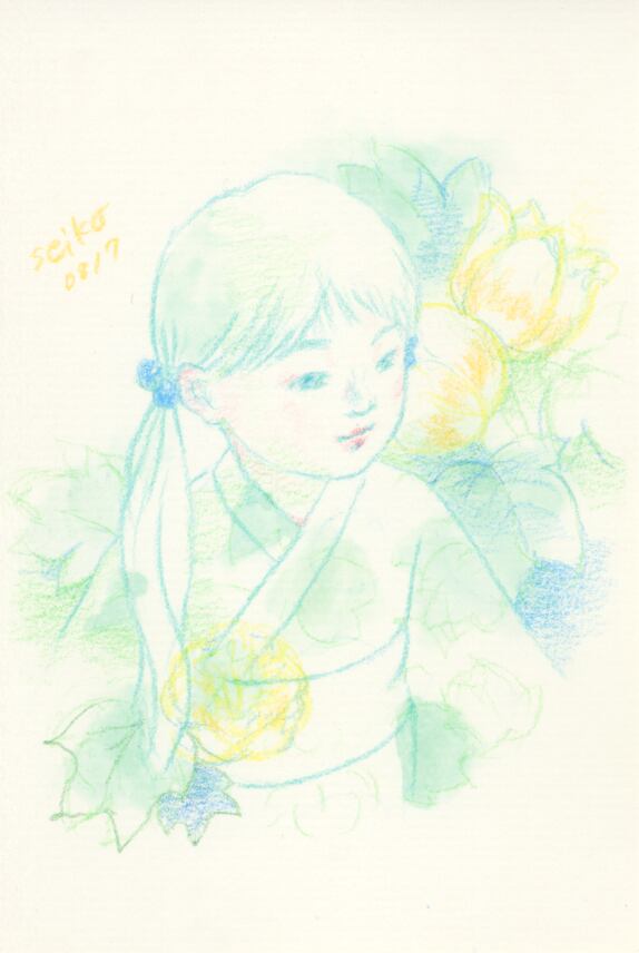 誕生花×こどものドローイング原画です。