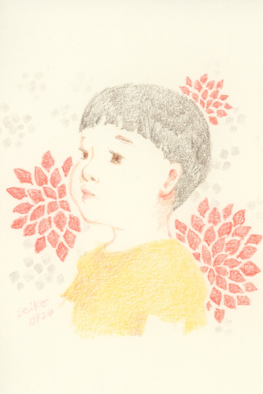 誕生花×こどものドローイング原画です。