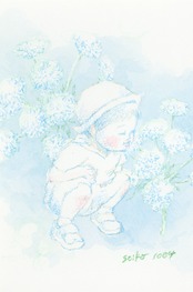 誕生花×こどものドローイング原画です。
