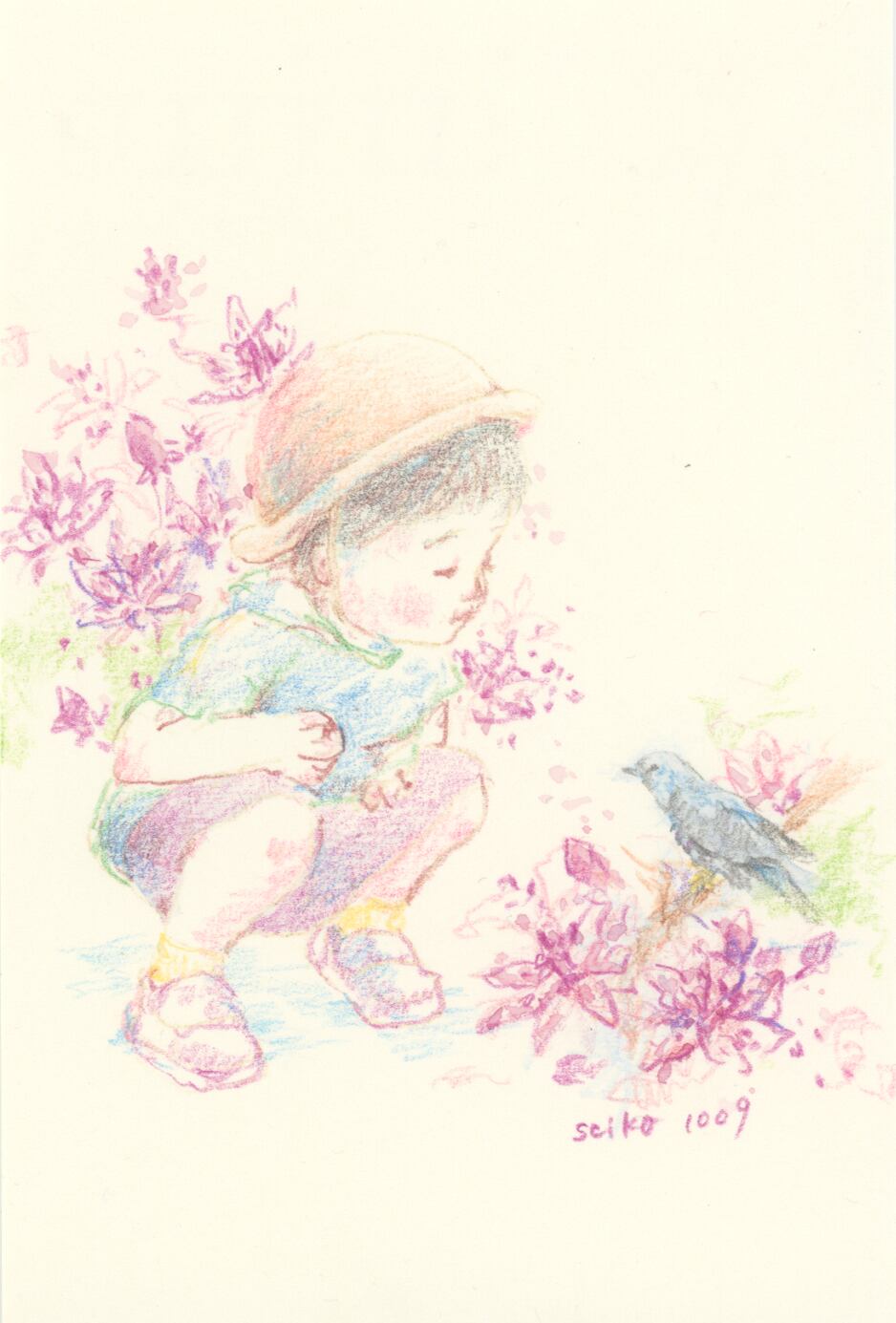 誕生花×こどものドローイング原画です。