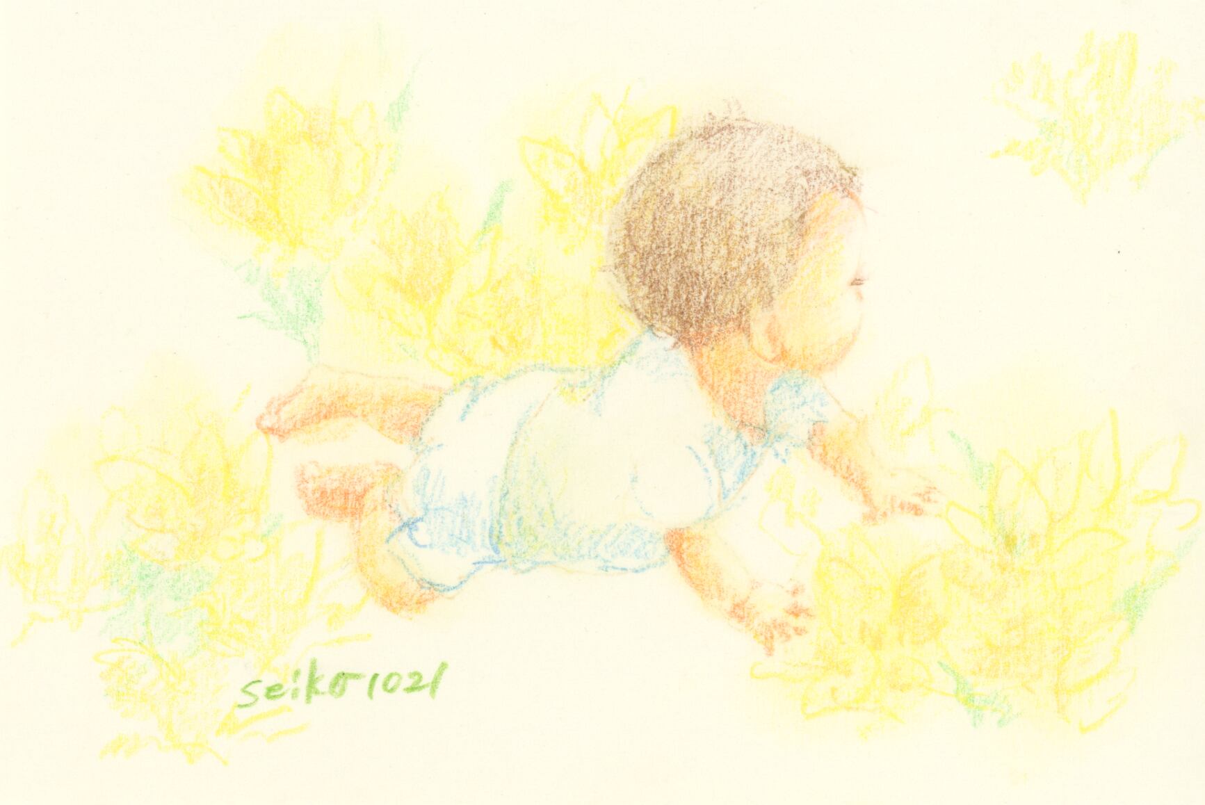 誕生花×こどものドローイング原画です。