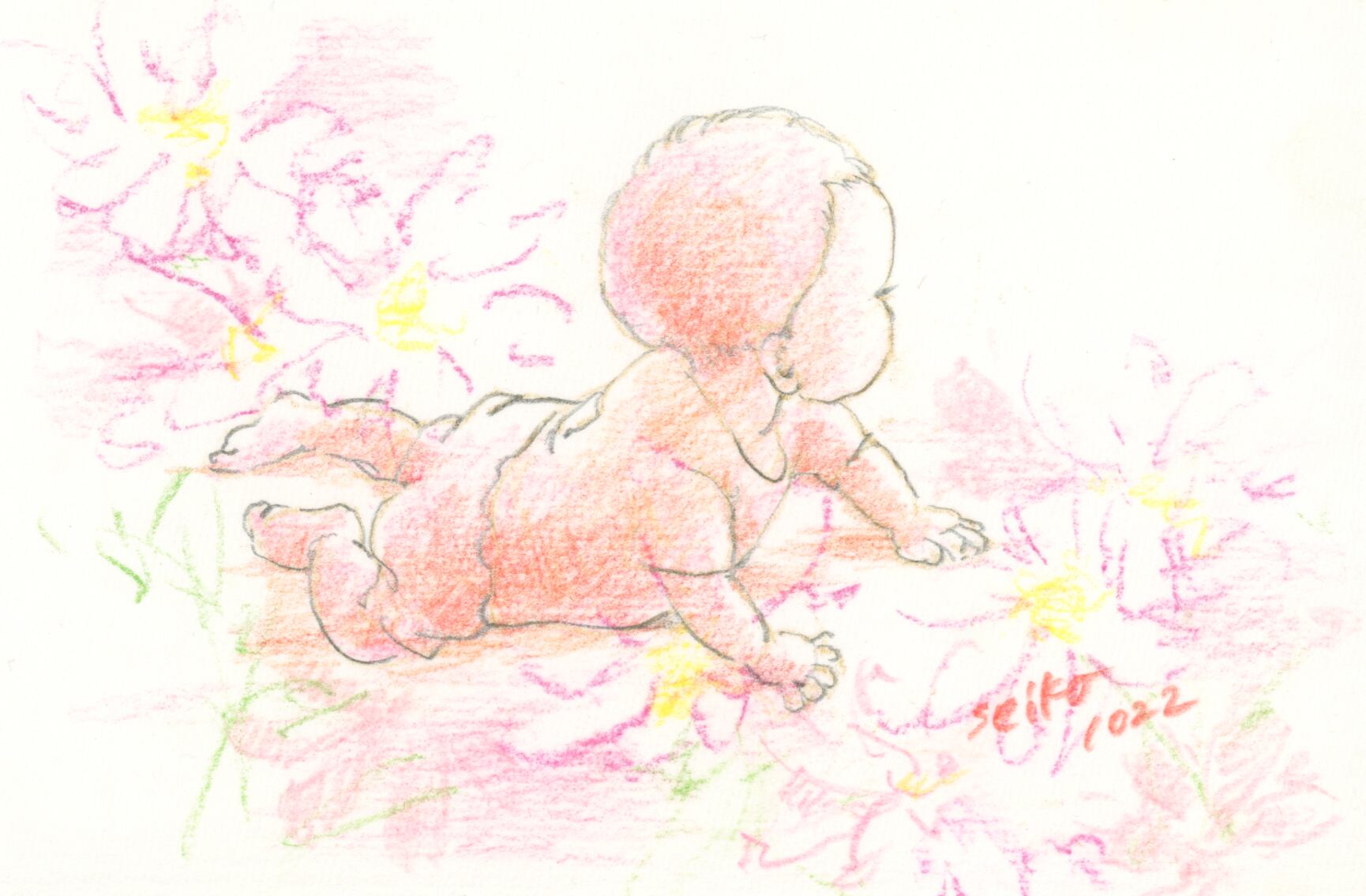 誕生花×こどものドローイング原画です。
