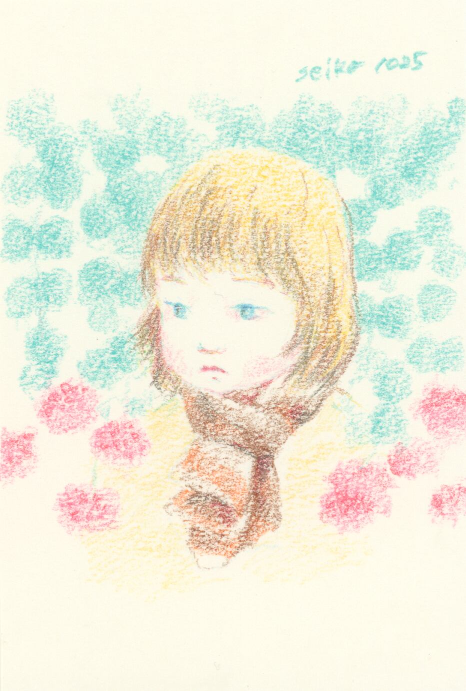 誕生花×こどものドローイング原画です。